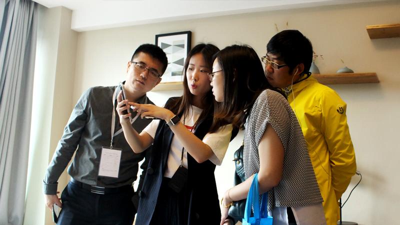 商遇智慧樣闆房參觀,研討(tǎo)團一行(xíng)對控客軟件(jiàn)交互興趣濃厚本次研討(tǎo)會(huì)爲期一天,研討(tǎo)團一行(xíng)在杭州未來科技城與錢江新城先後探訪控客智慧家庭、智慧公寓、智慧辦公落地(dì)案例,并展開(kāi)智慧化應用(yòng)沙龍探討(tǎo)物(wù)聯新技術(shù)在地(dì)産領域的(de)應用(yòng)與發展。
